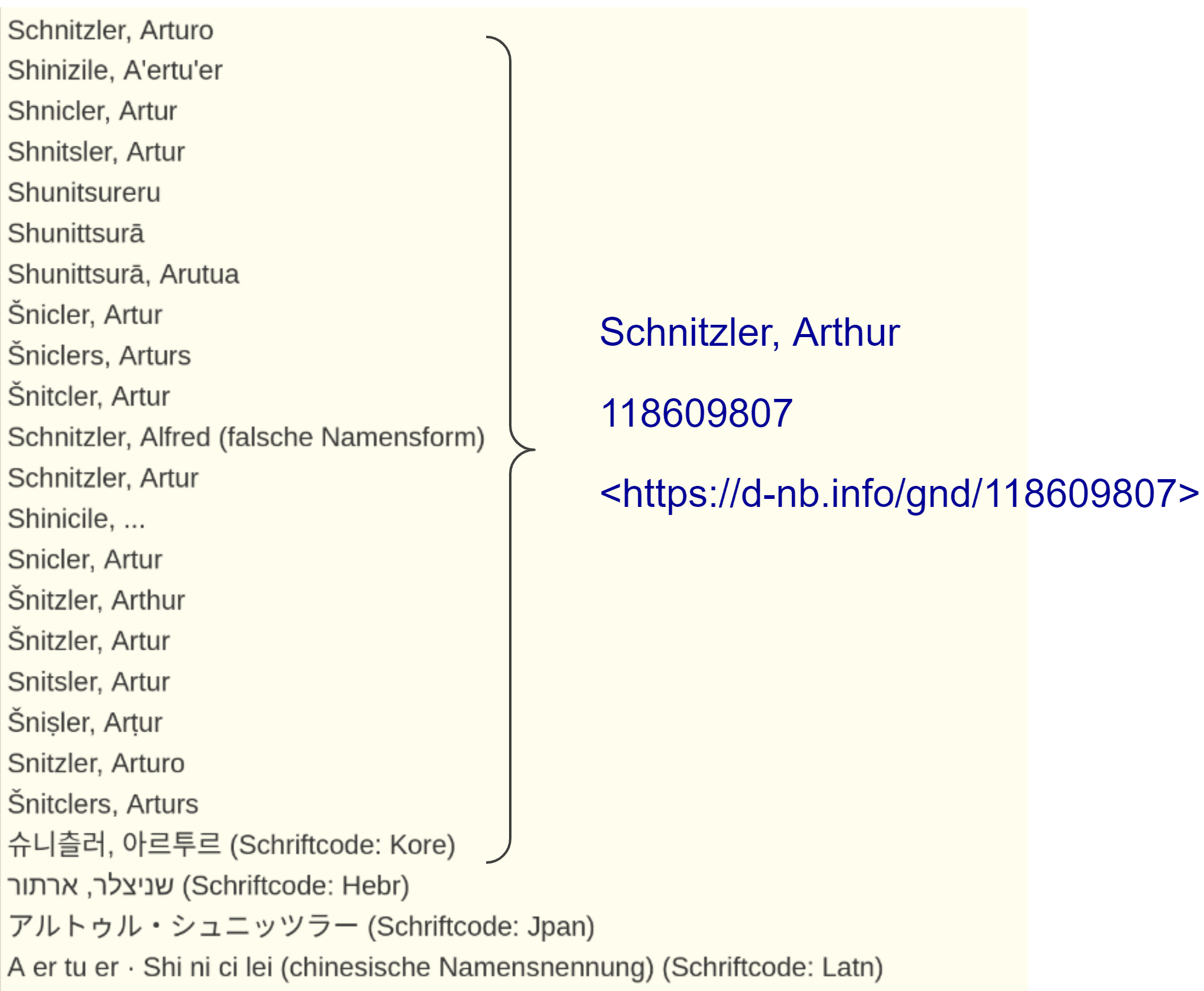Abbildung 6: Varianten in der Schreibweise von Arthur Schnitzler in der DNB. Bild: Daniel Schopper, CC-BY-4.0