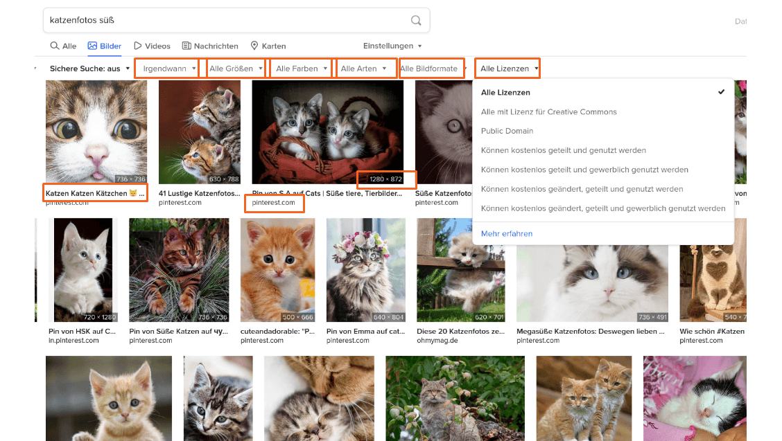 Abbildung 3: Metadaten in einer Bildersuche. Bild: Daniel Schopper, CC-BY-4.0