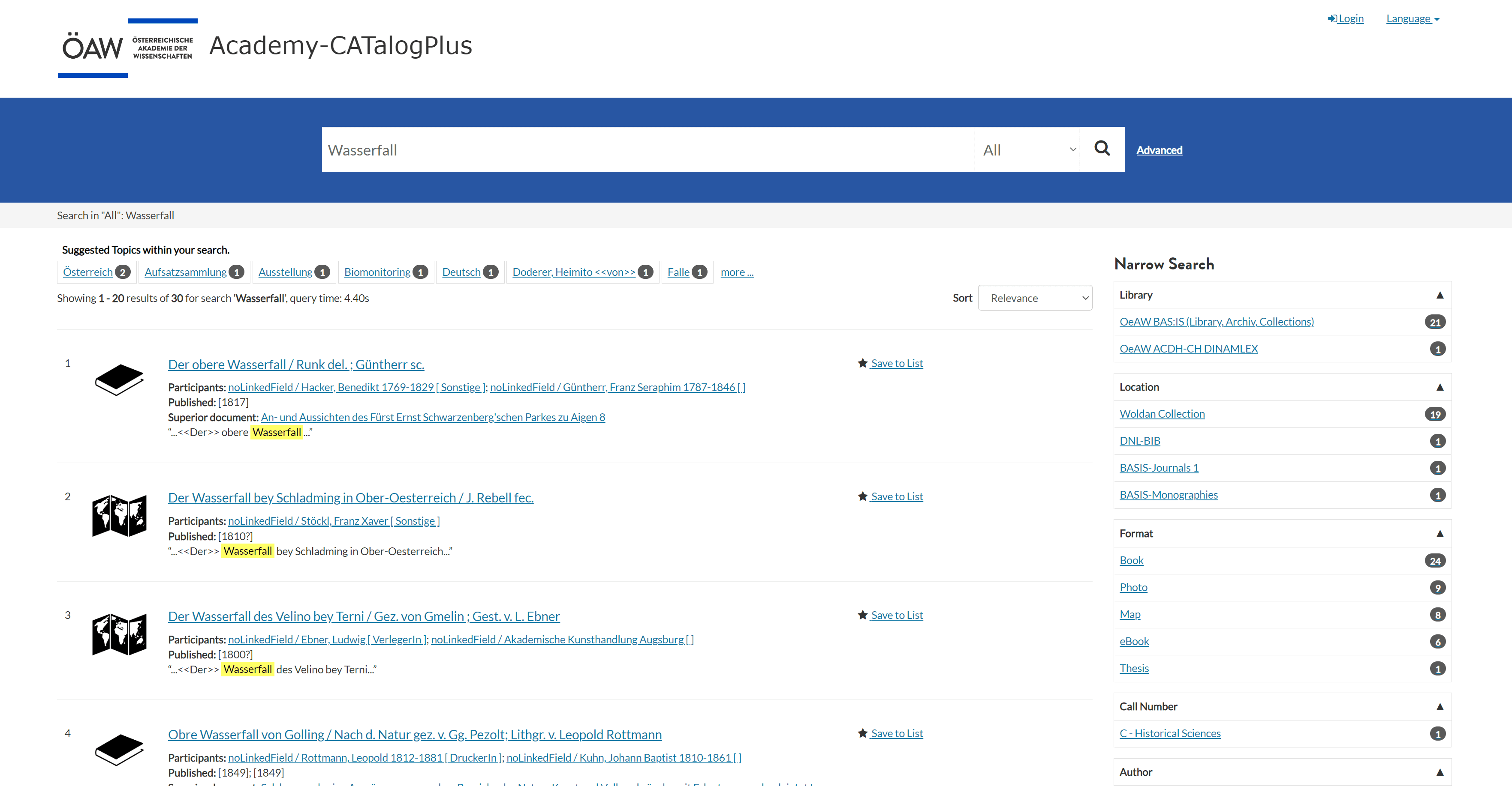 Abbildung 5: Katalog von Bibliothek und Archiv der ÖAW. Bild: Daniel Schopper, CC-BY-4.0